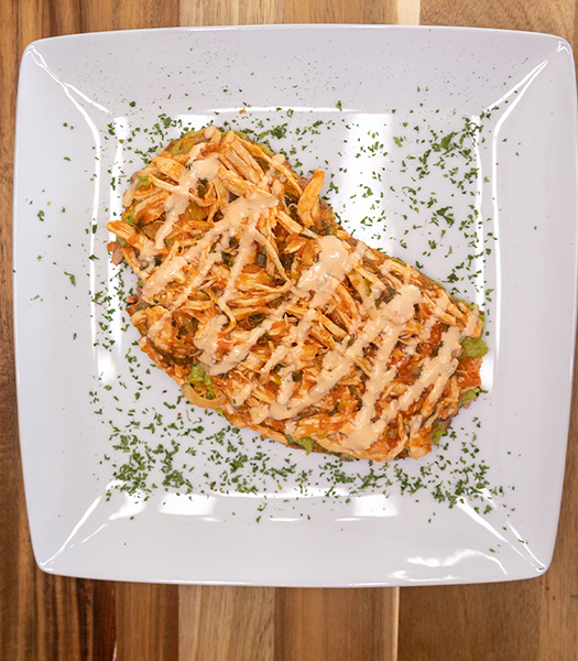 Tostón con pollo desmechado