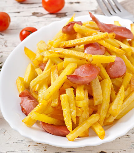 Papas fritas y salchicha.